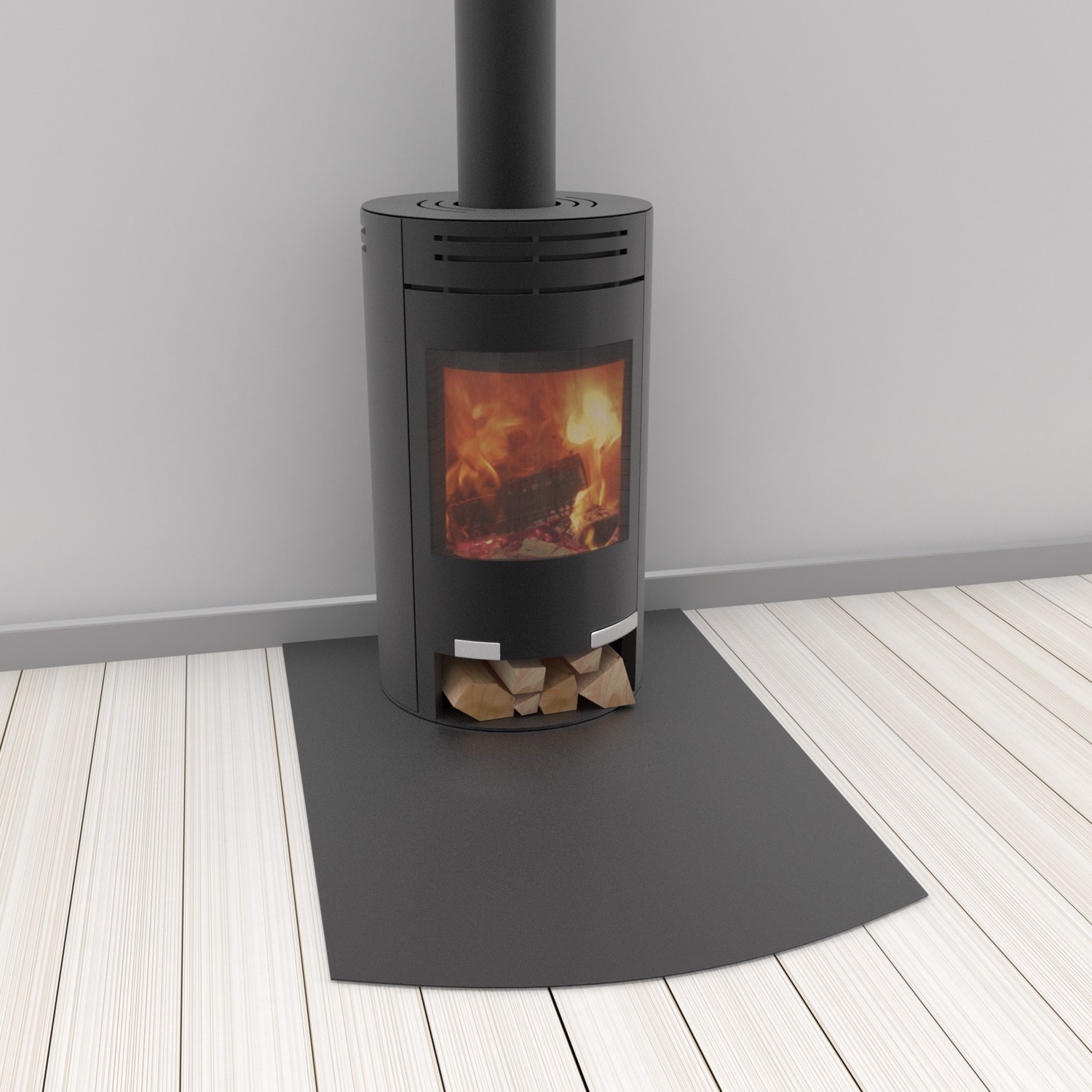 Neliskulmainen kamiinan aluslevy / kevyesti kaarrettu etureuna - mustaksi maalatusta teräksestä